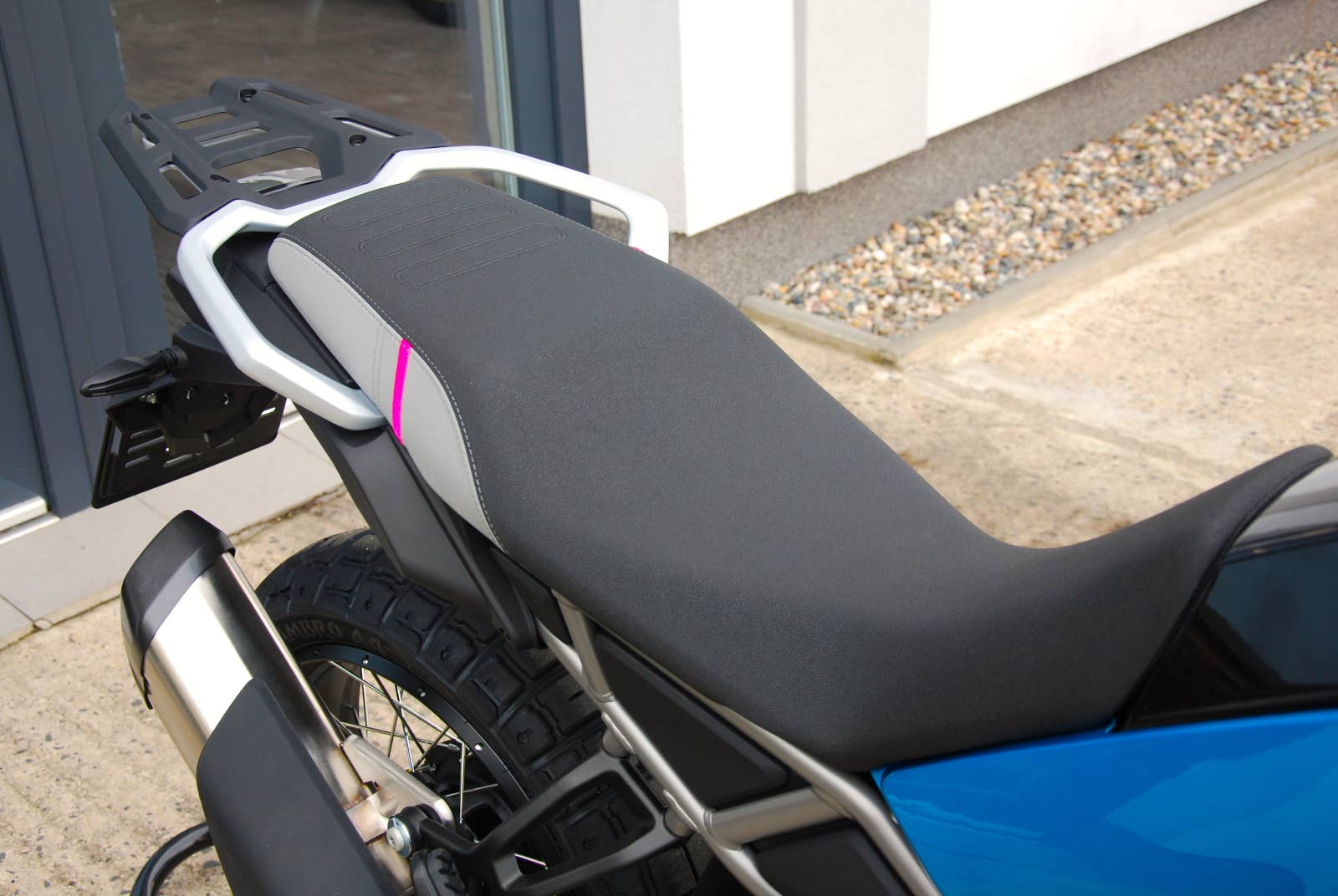 Teréní ambice: Zdvihy vpředu a vzadu 200mm, 21″ přední kolo a 18″ zadní kolo naznačují, že i jízda mimo zpevněné cesty nebude překážkou v nacházení nových zážitků. Lehký motor zastavěný v rámu z chrommolybdenových trubek pro co nejnižší těžiště stroje společně s plně stavitelným podvozkem KYB poskytují samozřejmou ovladatelnost.