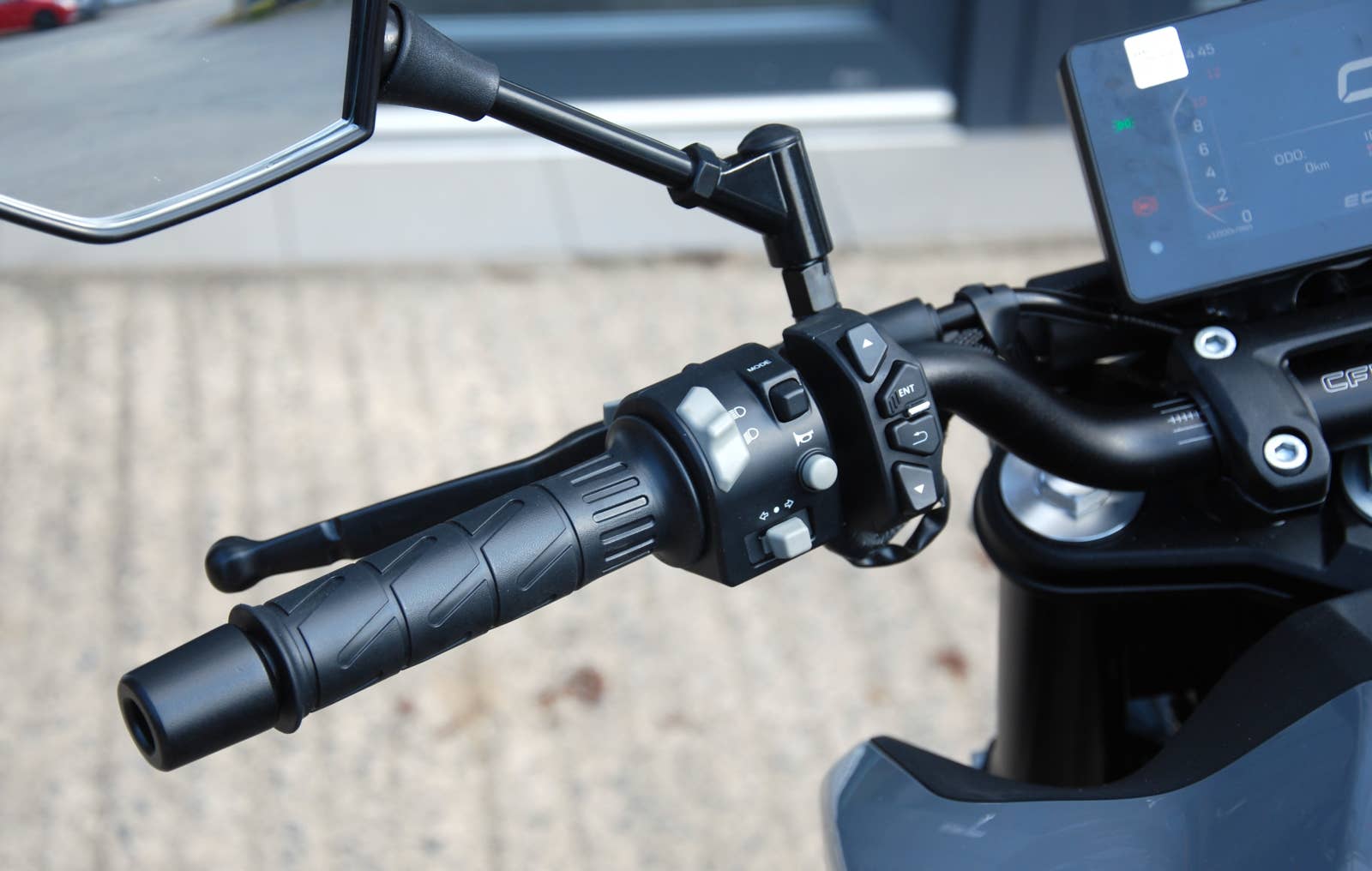CFMOTO Konektivita: Komunikační modul T-BOX* umožňuje přenos dat z vozidla do mobilní aplikace CFMOTO Ride. Zde je zobrazena poloha stroje, historie jízd a statistika, informace o stavu vozidla, upozornění na manipulaci se strojem a další. V aplikaci také naleznete novinky ze světa CFMOTO a informace o prodejcích a servisech. Součástí aplikace je také funkce MotoPlay, která umožňuje přenos navigace z aplikace přímo na displej vozidla.