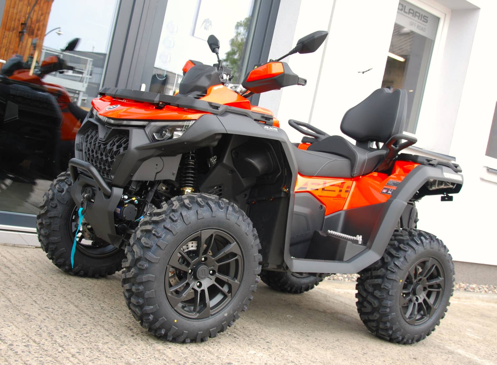 Modernizace na všech frontách: Větší výkon, pokročilejší technologie a tím i dovednosti. Úžasná kombinace ovládání a techniky pro každodenní práci či adrenalinové dobrodružství v terénu. Jezděte a pracujte s vědomím, že máte v rukou po všech stránkách technologickou špičku v oblasti ATV. Vylepšené jízdní vlastnosti, zcela nový design, revidovaný – silnější a lehčí rám, vyšší výkon, nižší hmotnost, větší pohodlí, jednodušší a přesnější ovládání. Nová platforma motoru V-Twin se vstřikováním Bosch. Vyšší výkon o 20% je promítnutý v celém spektru otáček. Ride-By-Wire. EBS – motorová brzda.