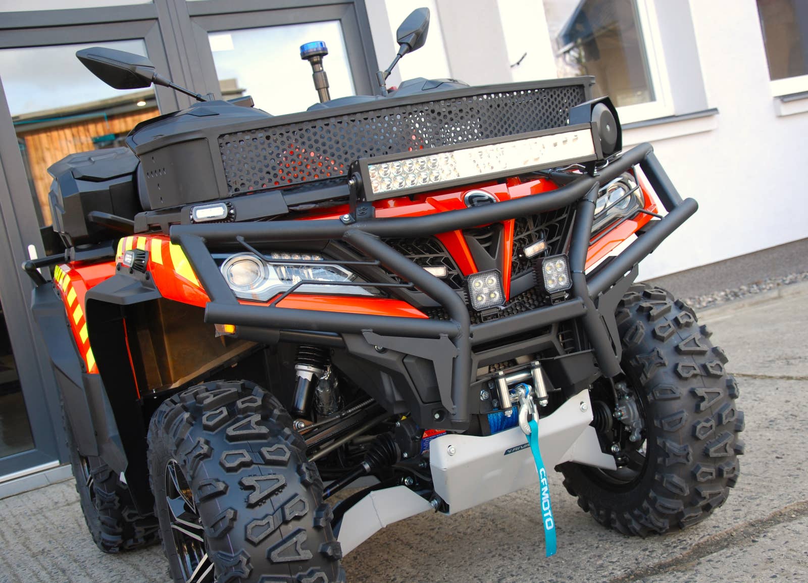 Jsme hrdí na to, že jsme mohli připravit v pořadí již třetí záchrannářskou čtyřkolku, jako vždy je vše kompletně naše práce a to včetně polepů. Jedná se konkrétně o stroj CFMOTO Gladiator X850.