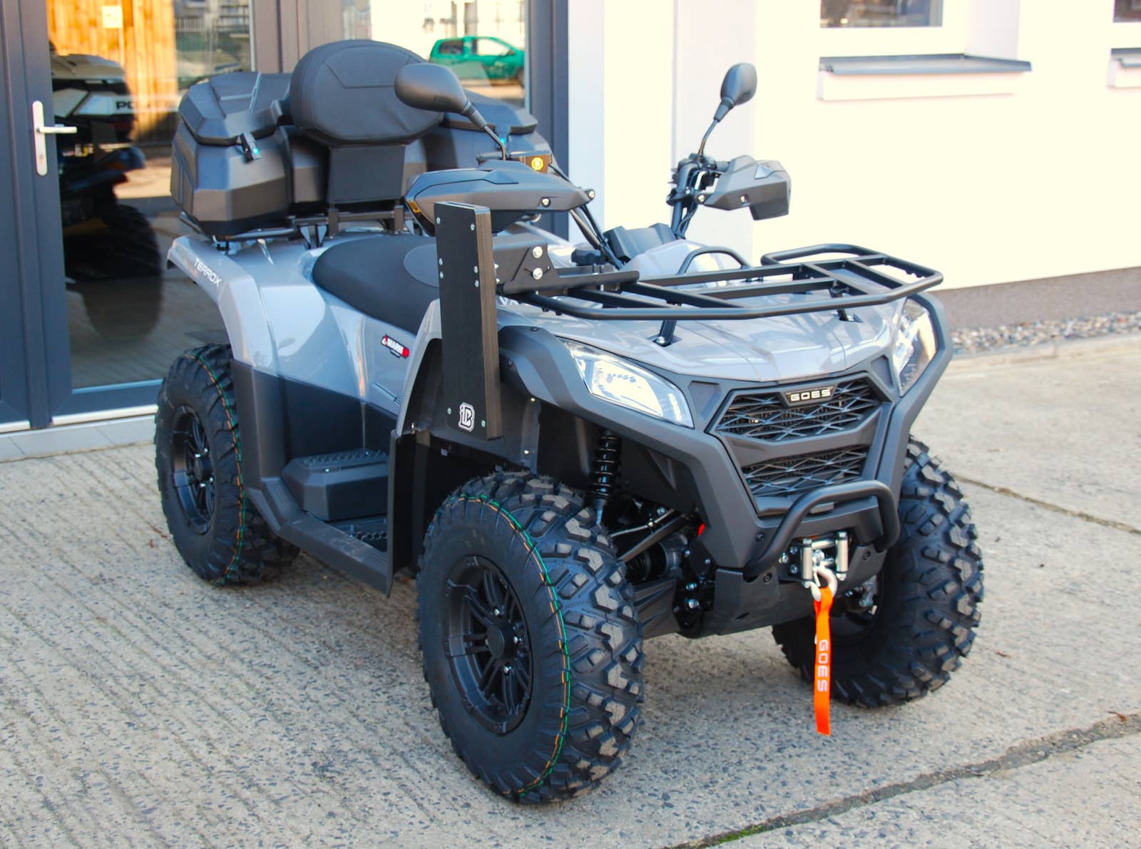 Táhne. Tlačí. Pracuje. GOES TERROX 500 přináší inovaci do osvědčeného jednoválce s impozantním krouticím momentem, vybaveného vstřikováním BOSCH. Tento motor je charakteristický svou nízkou spotřebou paliva a vysokou účinností. Pokročilý kanadský variátor CVTech představuje klíčový prvek pro bezproblémový a efektivní přenos výkonu na kola. Díky své spolehlivosti a lineárním vlastnostem zajišťuje optimální výkon v jakémkoli jízdním scénáři. Elektronická uzávěrka předního diferenciálu, možnost volby pohonu 2×4 nebo 4×4. Do každého terénu, pro každý účel.