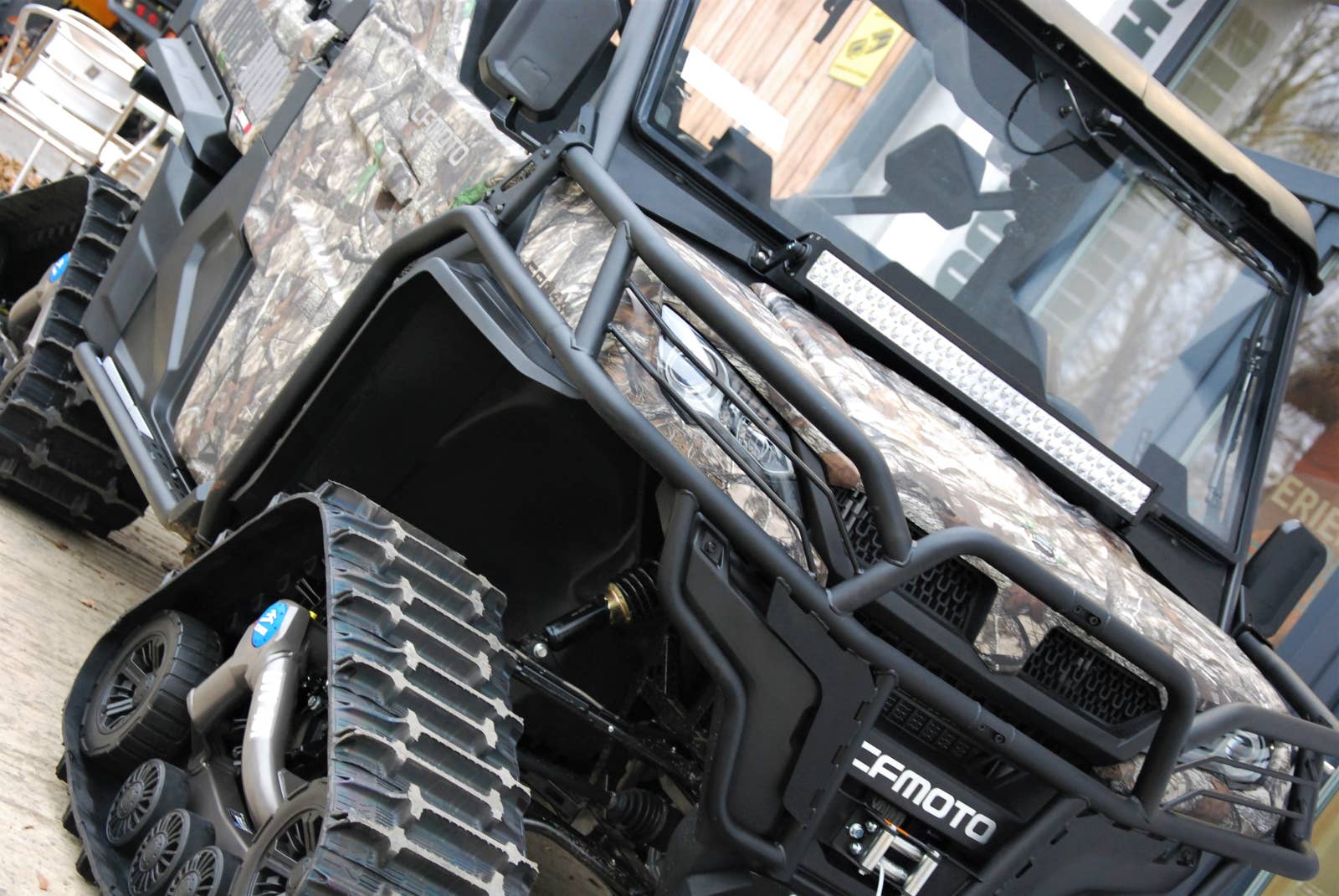 Pokročilá technika: Celé pružení má vylepšený systém závěsů. Zdvih předního a zadního zavěšení je 230 mm. Velkým plusem je variabilní systém sklonu tlumičů, což ve velké míře vyhleduje jízdu přes různorodé překážky. Automatický zadní samosvorný diferenciál EATON myslí a pracuje samostatně, rozezná, co se děje pod koly vzadu a zasahuje tehdy, když to stroj potřebuje a to tak, že posádka stroje o tom ani netuší. Jeho výjimečnost je ocenitelná v těžkém prostředí, jako je bláto, sníh, štěrk, písek… Tato součást stroje od amerického výrobce je TOP komponentem pro čtyřkolky vůbec. Kanadský variator CVTech je v tomto případě speciálně naladěn na vysoké pracovní nasazení. Naviják s tažnou silou 3500 lbs a kabelovým ovladačem. Sklopná korba je vybavena na bočnicích oky pro připoutání přesahujícího nákladu. K jejímu vyklopení vám stačí jedna ruka. Pro potřeby těžké pracovní zátěže je posilovač řízení dimenzován na vysoký výkon. Volant jede lehce a kola přesně zatáčejí. LED osvětlení naleznete vpředu i vzadu, je nejen moderní, ale především výkonné.