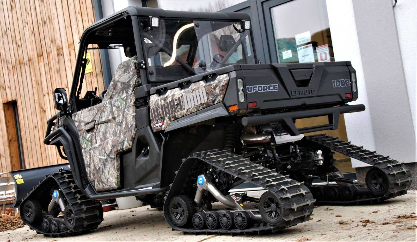 Největší Gladiator UTV1000 na univerzálních pásech Camso UTV4S1 s ocelovou radlicí.