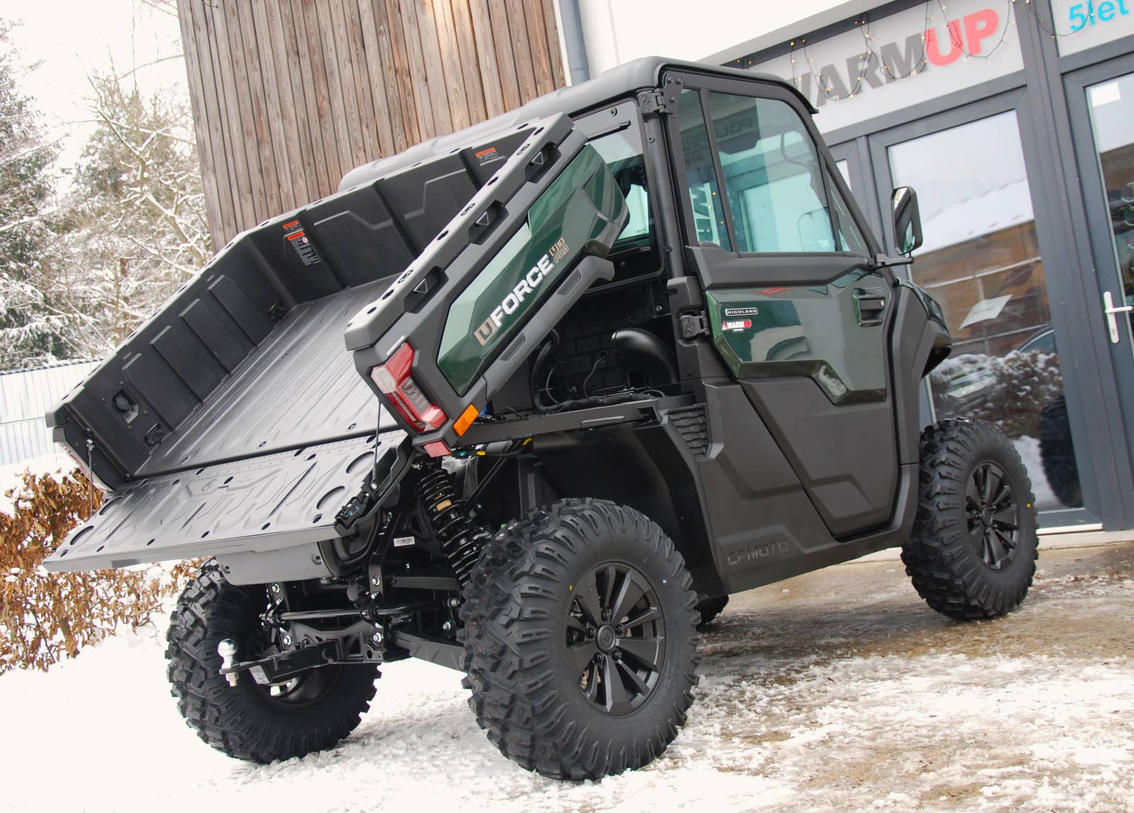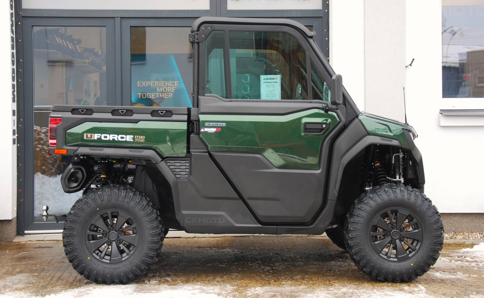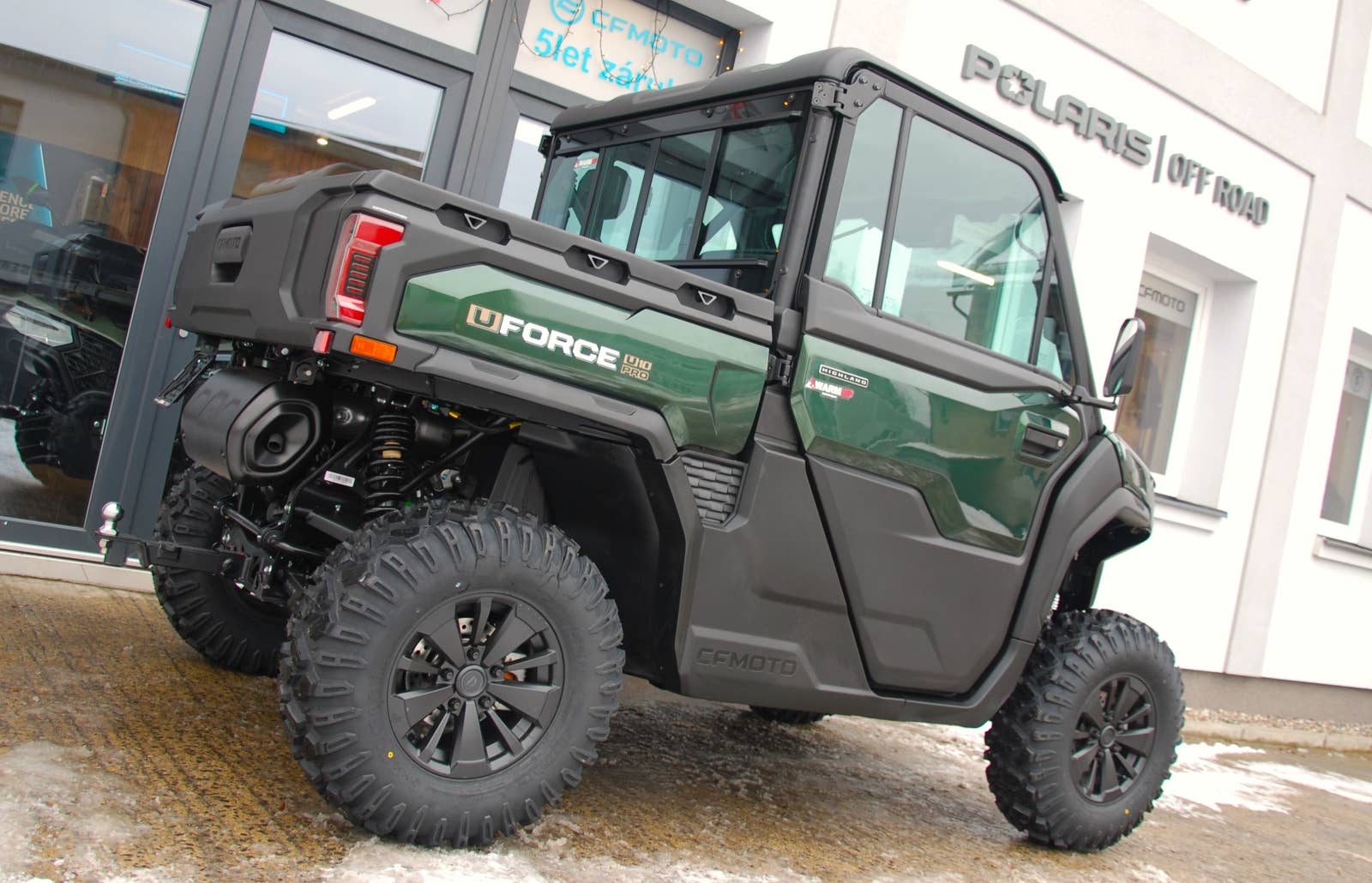 Prémiové UTV = prémiová výbava: Verze HIGHLAND obsahuje všechny prvky U10 PRO + je vybavena plně uzavřenou kabinou s prémiovými prvky výbavy, jaké byste v UTV určitě nečekali. Vaše potřeby vaše volba. Verze s ABS má maximální rychlost 90 km/h. Verze bez ABS 60 km/h. Plné dveře v barvě stroje na obou stranách kabinu plně uzavírají. Obojí dveře disponují elektrickým stahováním oken. Komfort posádky je citelný, menší hluk, žádný prach, vyšší bezpečnost. Elektriké přední okno otevírá zespodu nahoru. Na vrchu uprostřed okna je integrován centrální stěrač s ostřikovačem. Další luxusní prvky, které byste v kabině UTV vůbec nečekali. Vytápění (H), větrání (V), a chlazení (AC). Systém HVAC má za úkol kromě topení a klimatizace zlepšovat také kvalitu vzduchu v kabině s co nejvyšší efektivitou. Prémiové je nejen čalounění střechy, ale stroj je na mnoha místech definován výšivkami a nápisy HIGHLAND.