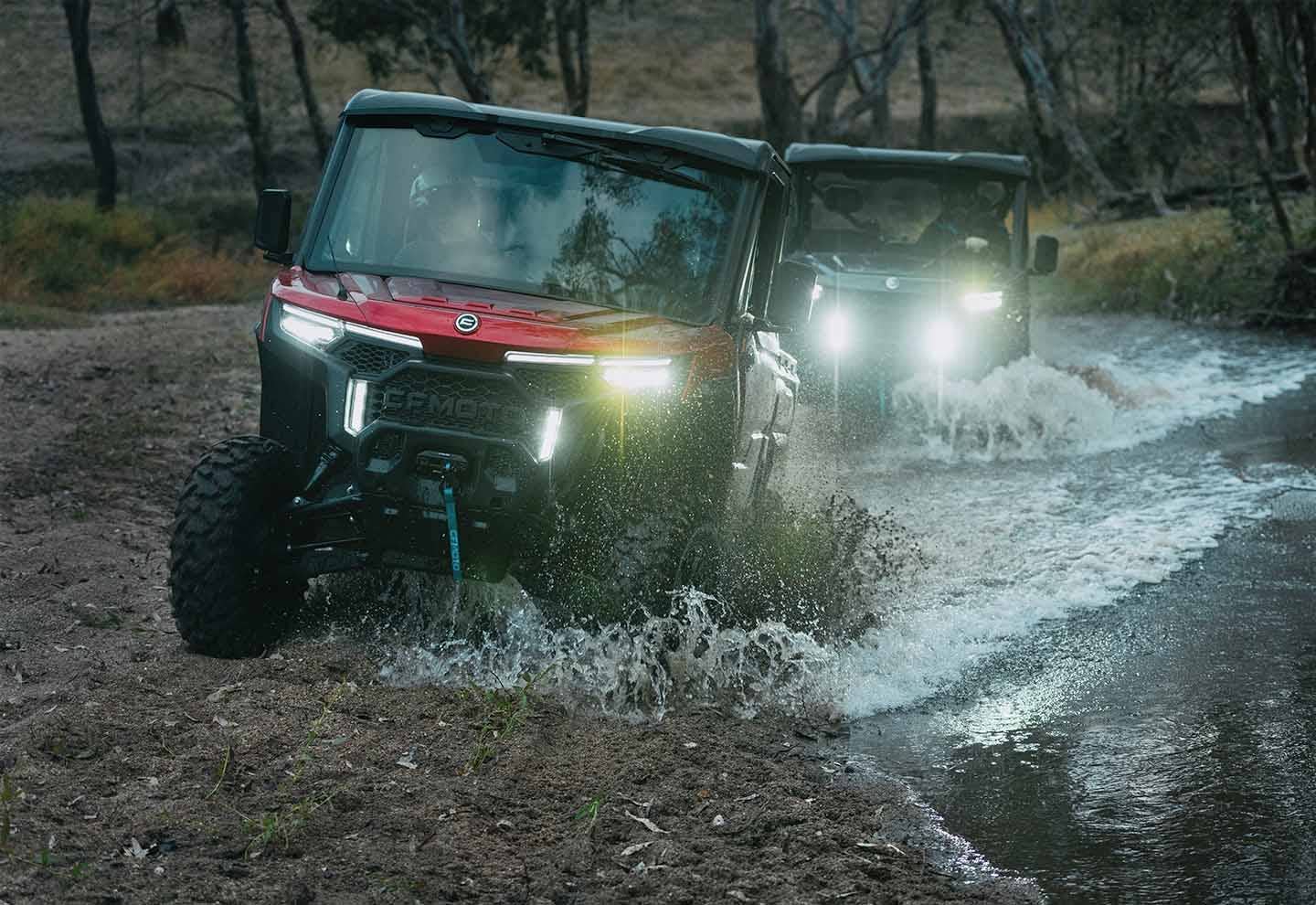 Srdcem je nový tříválec: Tři válce se vstřikováním Bosch EFI a exkluzivní systém variabilního časování ventilů (VVT) přinášejí tišší a úspornější chod. V kombinaci s variátorem CFMOTO CVT pohonné ústrojí disponuje zcela novými vlastnostmi. Výsledným efektem je vyšší točivý moment při nízkých otáčkách a přesná kontinuita motoru/variátoru v různých pasážích jízdy. Motoru se díky variabilnímu časování ventilů (VVT) dostává plynulý a konzistentní výkon s maximálním točivým momentem i při nízkých otáčkách. V praxi se to projeví například při tažení těžkého nákladu či během průjezdu těžkého terénu, kdy motor účinně pracuje v každém spektru otáček optimalizovaným dávkováním paliva.