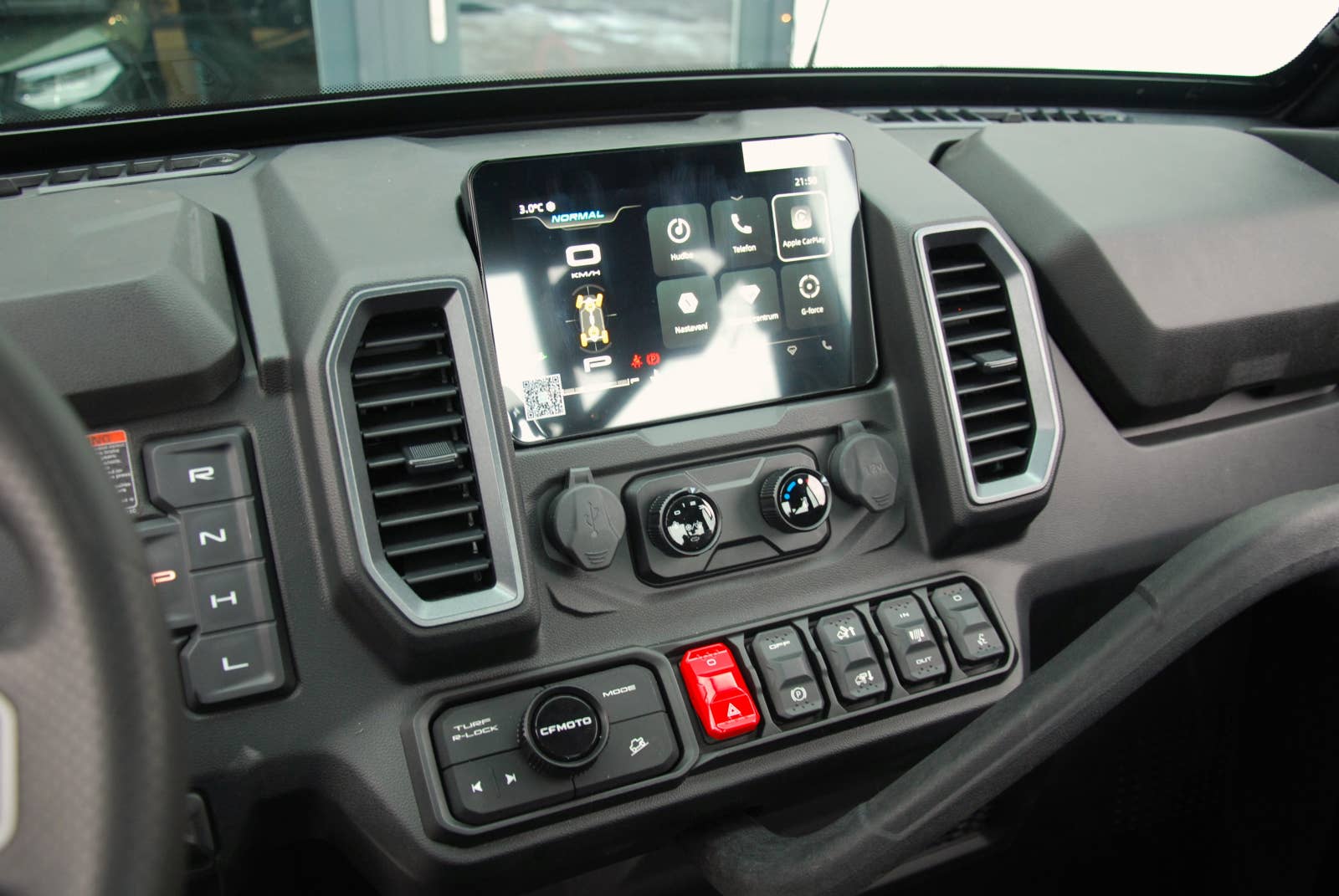 Komfort posádky je pro nás nejdůležitější. Vychutnejte si jízdu v UTV s pohodlím auta s dotykovým displejem a novou audio technikou. MMI displej nabízí komfortní prostředí s nepřeberným množstvím funkcí. Upgrade softwaru stroje je možný i doma přes APP CFMOTO RIDE (OTA systém s jednotkou T-Box - volitelné). Výkonný audiosystém dokáže posádce zpříjemnit jízdu, reproduktory jsou zabudovány ve střeše, čímž se eliminuje ztráta kvality dodávaného zvuku vůči vnějšímu hluku. Nové, jemné laděné pérování, bezkonkurenční světlá výška 330 mm, 29“ pneumatiky = výjimečná stabilita + nejvyšší kontrola stroje v náročném provozu a zároveň je zaručen maximální komfort posádky.
