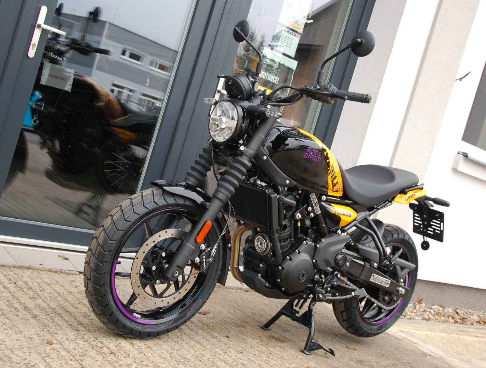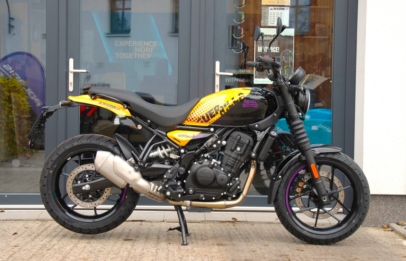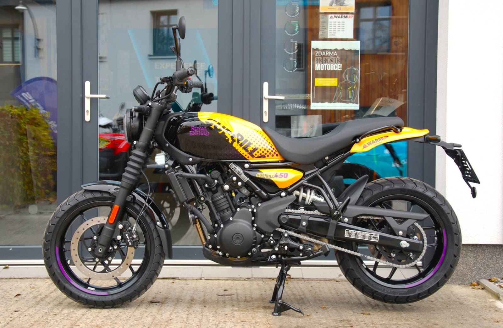 S motorem "Sherpa" o objemu 452 ccm s výrazným charakterem vyladěným v zájmu vzrušujícího výkonu na silnici, silným dvojitým páteřovým ocelovým rámem, dynamickou jízdní polohou, která umožňuje vzpřímenou jízdu nebo mírně sportovní předklon, se model Guerrilla 450 opravdu vrací k základům původních roadsterů. Jeho dynamická ergonomie a živý výkon zaručují jedinečnou univerzálnost a citlivost, které přispívají k příjemné jízdě. Ať je to vzpřímeně, v předklonu, sprintem na plný plyn, po klikatých silnicích nebo při kodrcání po hrbolatých městských ulicích a kličkování v provozu, při líné jízdě nedělním ránem nebo během víkendové vyjížďky je model Guerrilla dychtivý a přizpůsobivý pro to vše, je skutečnou „motorkou na všechny cesty“.